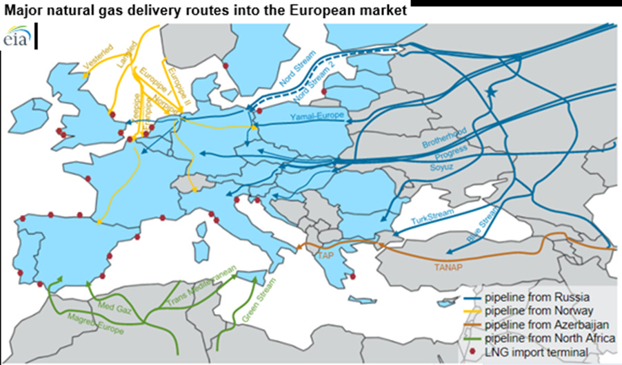 Unfortunately for Europe, Gazprom (the Russian government owned gas giant) has a long history of cutting gas flows to Europe. In 2009, Gazprom completely shut off gas flows through Ukraine during a financial dispute with Ukraine. At that time, Ukraine’s pipelines delivered 80% of Europe’s Russian gas imports. So, this wasn’t just shutting off the gas to Ukraine, it was shutting off the gas to a large portion of Europe. To add injury to insult, Gazprom shut off the gas in January.