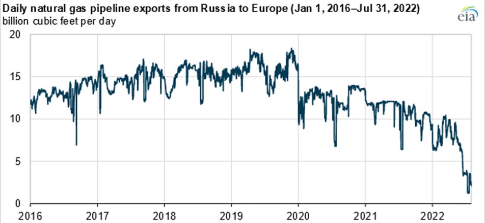 Yet Gazprom recently announced their operating results for the first half of 2022. To the surprise of anyone who thought that Europe held the cards in the energy fight, Gazprom’s profits jumped by a whopping 250% compared to the first half of 2021. The reality is that Russia can profit nicely on reduced flows and higher prices.